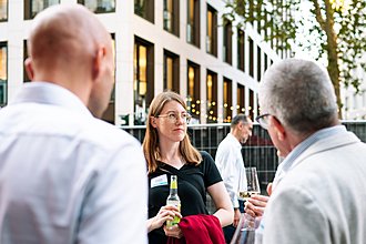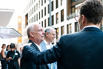 Aber auch die Location selbst lud dazu ein, über Innovation und Investitionen in Immobilien nachzudenken: Das noch nicht fertige Four-Viertel ist ein prestigeträchtiges Projekt in der Frankfurter Innenstadt mit vier neuen Hochhäusern auf einem ehemals vollständigen privaten Gelände, das in Zukunft mit Foodhall, Gewerbe, Hotellerie und Handel Menschen zum Verweilen einladen soll.
