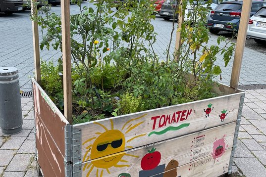 Das Projekt „Lebe deinen Raum“ der Stadt Hofheim hat das Ziel, die Biodiversität in der Stadt zu fördern und die Aufenthaltsqualität zu verbessern. Im Rahmen der Initiative „1001 Tomate“ bauen Jugendliche und Ehrenamtliche 15 Hochbeete, die bunt bemalt und mit über 150 samenfesten Tomatensorten bepflanzt wurden. Diese Hochbeete haben ihren Platz im Herzen der Innenstadt gefunden. Ein weiteres Teilprojekt, das Bank-Projekt, wurde ebenfalls erfolgreich umgesetzt: Die Bänke wurden bemalt und in der Nähe der Tomatenkübel aufgestellt, um mitsamt den Farben der Natur die Aufenthaltsqualität weiter zu erhöhen. Zum Schluss gab es noch einen Ausflug in den Pop-Up-Biergarten in der Güterhalle. Er bot während der Fußball-EM ein tolles Public Viewing-Örtchen und zog viele Besucherinnen und Besucher an.