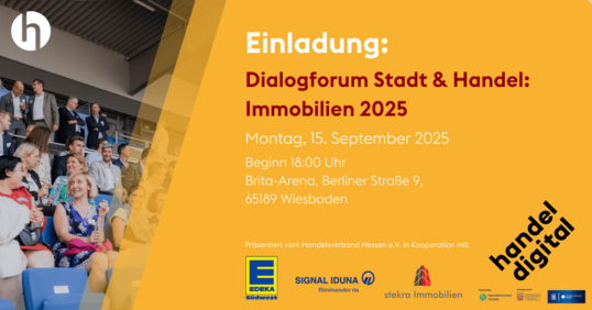 Unser beliebtes Dialogforum "Stadt & Handel: Immobilien" 2025 bringt ab 18:00 Uhr in der Brita Arena Wiesbaden erneut Vertreterinnen und Vertreter aus Stadt, Handel und Immobilienwirtschaft zusammen.